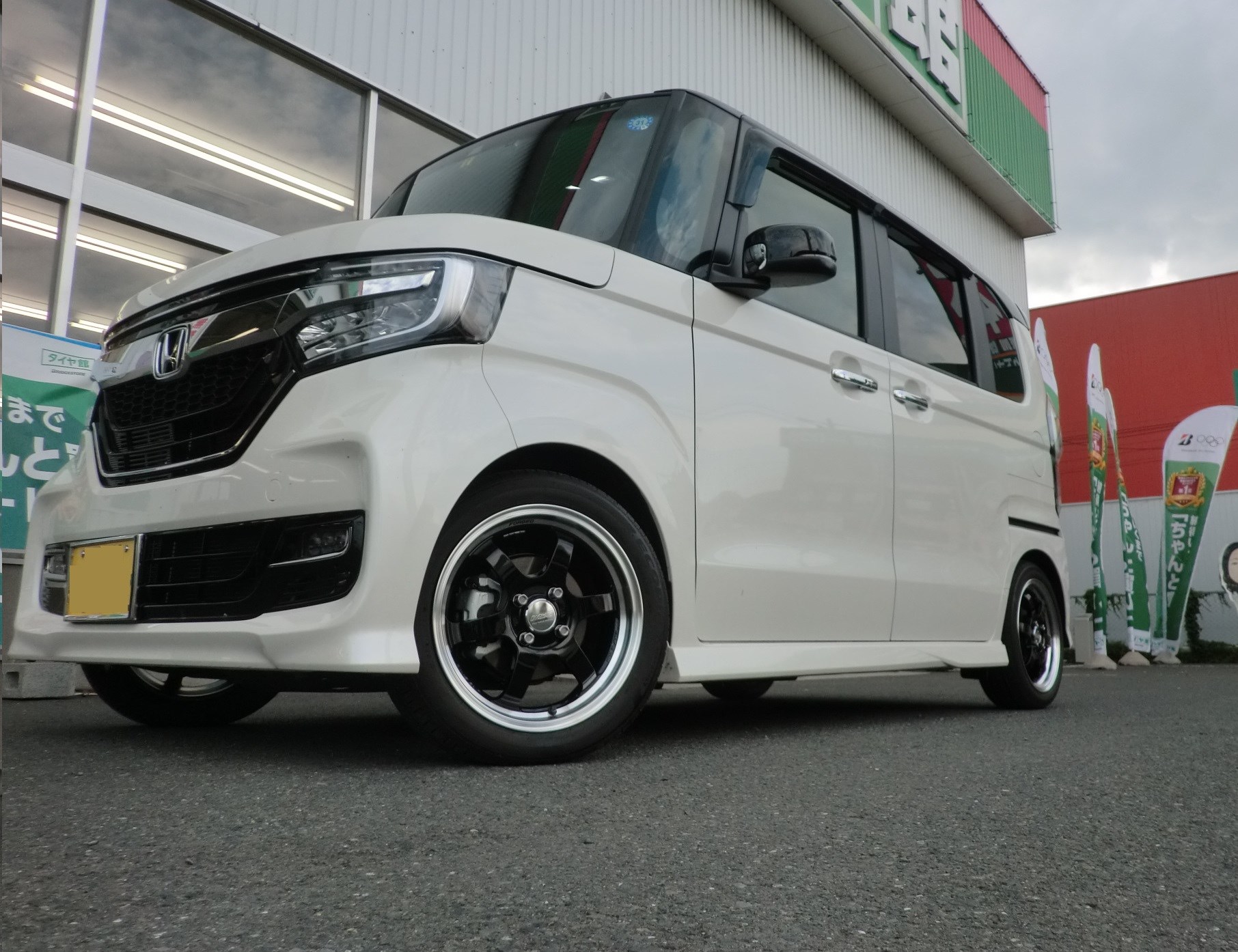 N Box ホイール交換 マフラー交換 車高調 アライメント調整 ホンダ N Box ホイール パーツ取付 マフラー類メーター類取付 サービス事例 タイヤ館 水沢 タイヤからはじまる トータルカーメンテナンス タイヤ館グループ